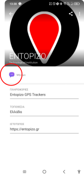 Επιλέξτε στη μέση περίπου της οθόνης, κάτω από την εικόνα, το "μήνυμα". Θα οδηγηθείτε στη "συνομιλία" με το entopizo.gr.